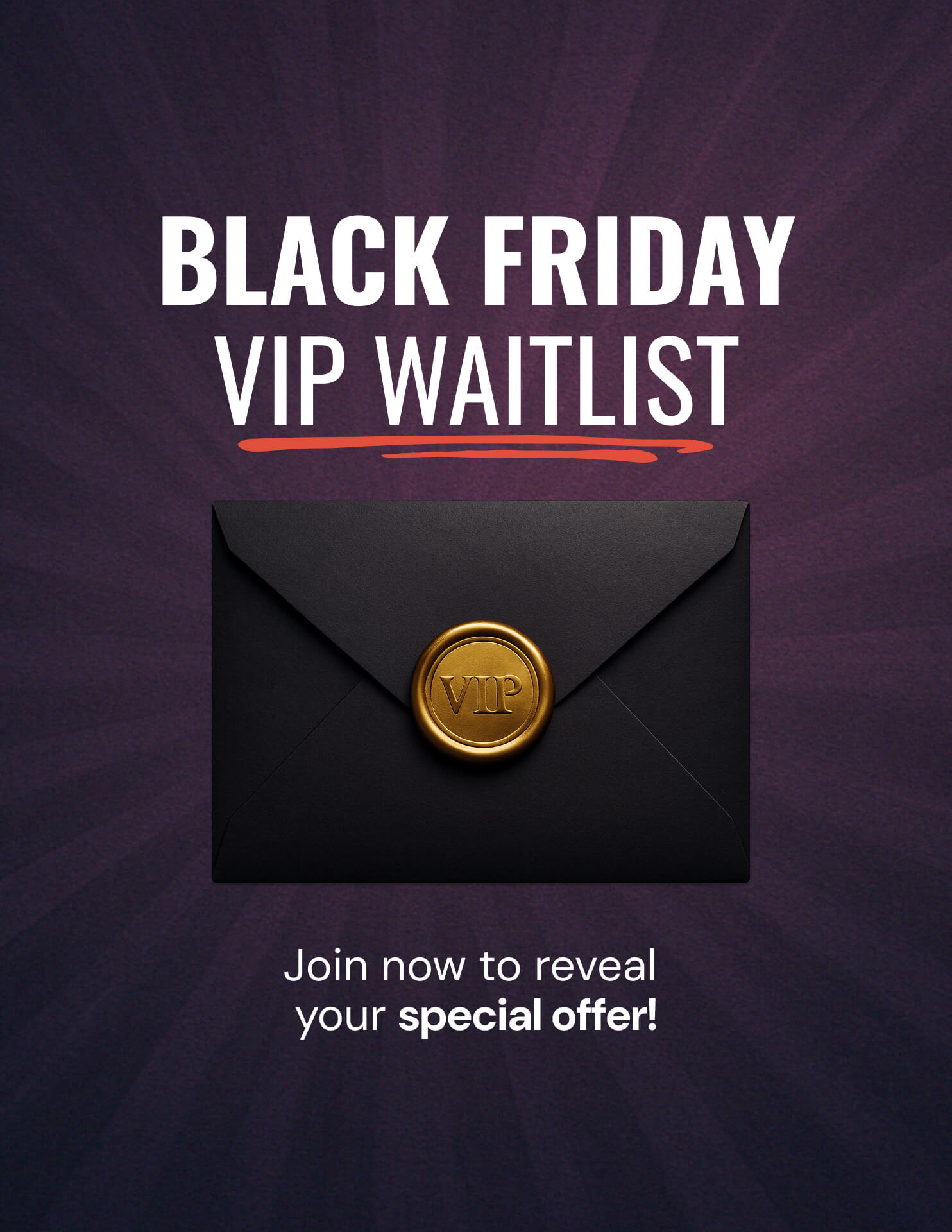 Join our 2025 Black Friday VIP Waitlist to unlock early access to the best deal we’ll offer, plus exclusive bonuses you won’t find anywhere else.